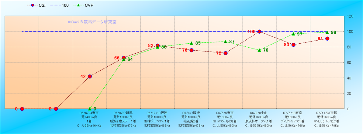 近走における4コーナーでの位置取りと上がり順位(頭数補正後) |