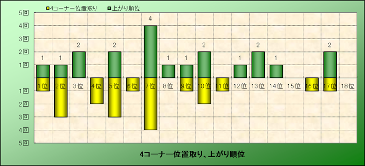 脚質解析 近20レースの4コーナーでの位置取りと上がり順位(頭数補正後) |