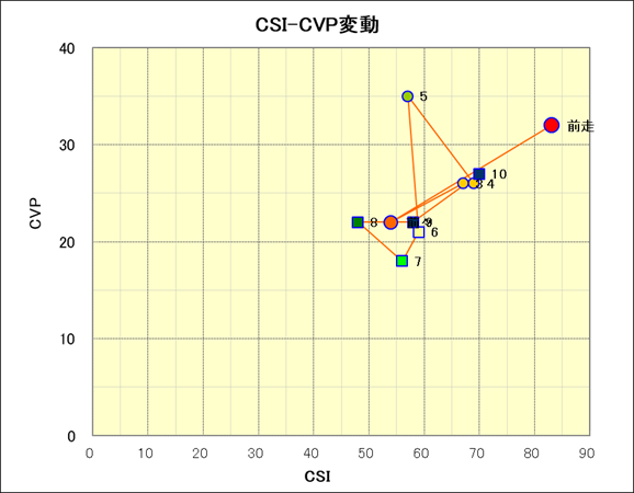 近走における4コーナーでの位置取りと上がり順位(頭数補正後) |