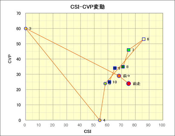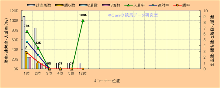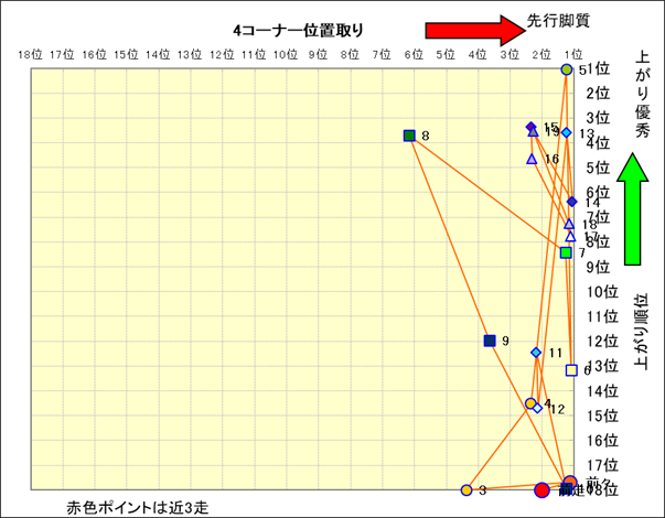 近走における4コーナーでの位置取りと上がり順位(頭数補正後) |