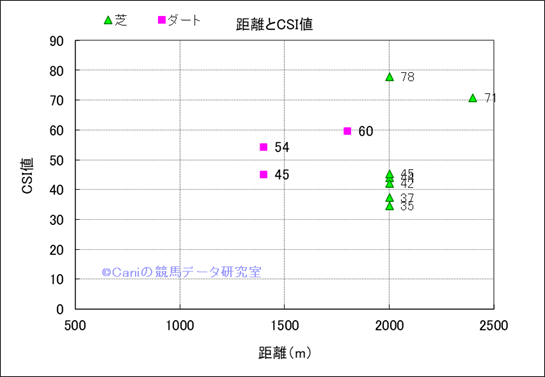 コース、最後の直線の長さ別成績(平地) |