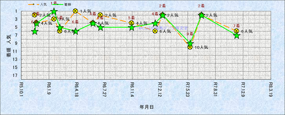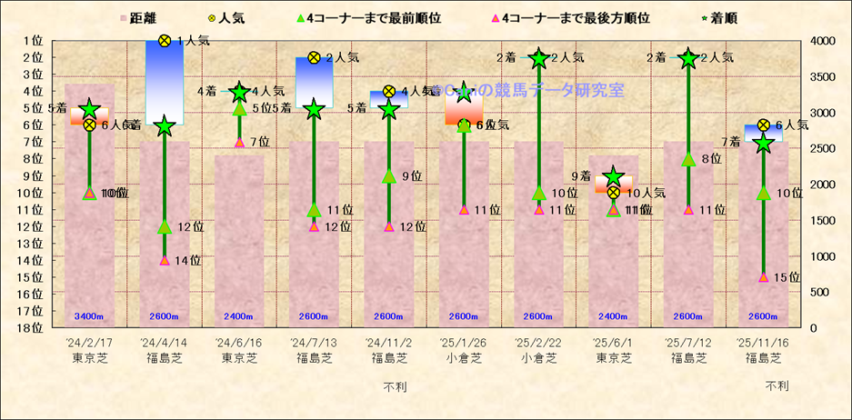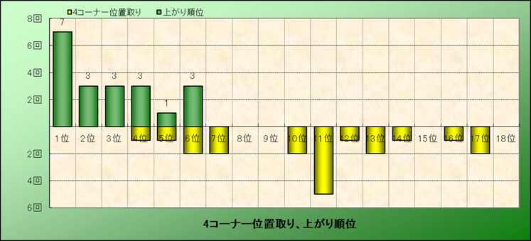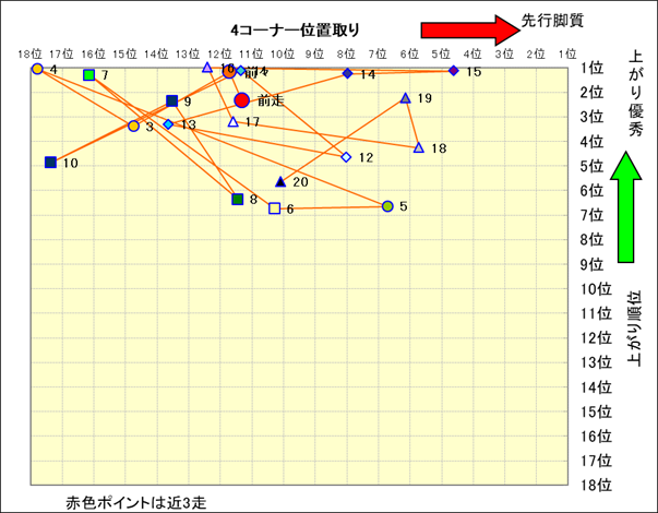 脚質解析 近20レースの4コーナーでの位置取りと上がり順位(頭数補正後) |