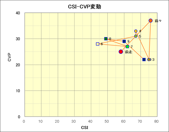 近走における4コーナーでの位置取りと上がり順位(頭数補正後) |