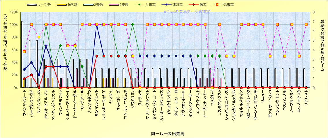 ライバル(相性)解析 同一レースに下記馬が出走した場合の成績とその馬に先着する先着率 |