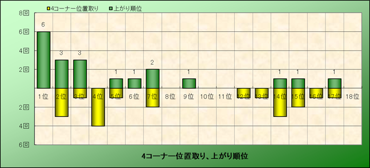 脚質解析 近20レースの4コーナーでの位置取りと上がり順位(頭数補正後) |