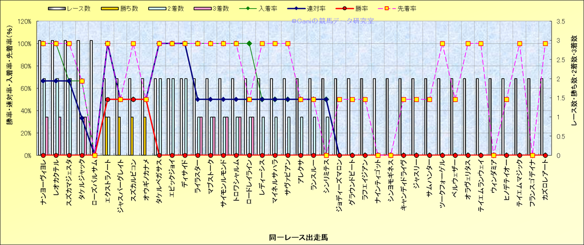 ライバル(相性)解析 同一レースに下記馬が出走した場合の成績とその馬に先着する先着率 |