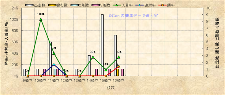 コース、最後の直線の高低差別成績(平地) |