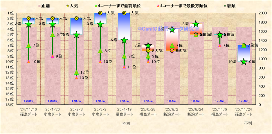 近10走 人気−着順-位置取りの推移 |