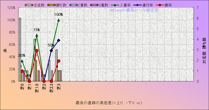 コース、最後の直線の高低差別成績(平地) |