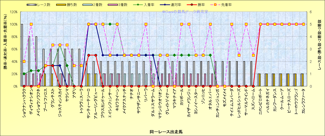 ライバル(相性)解析 同一レースに下記馬が出走した場合の成績とその馬に先着する先着率 |