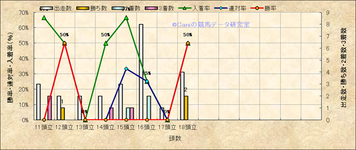 コース、最後の直線の高低差別成績(平地) |