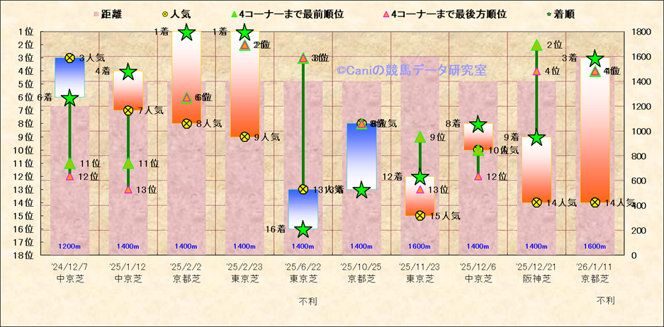 近10走 人気−着順-位置取りの推移 |