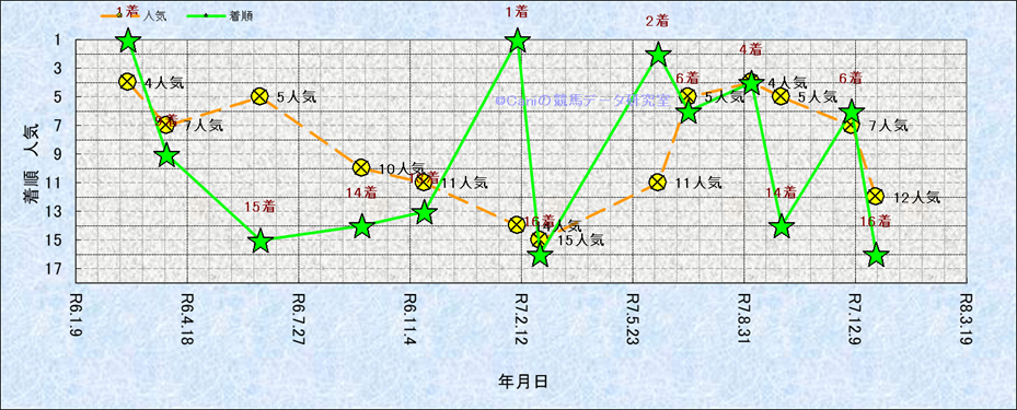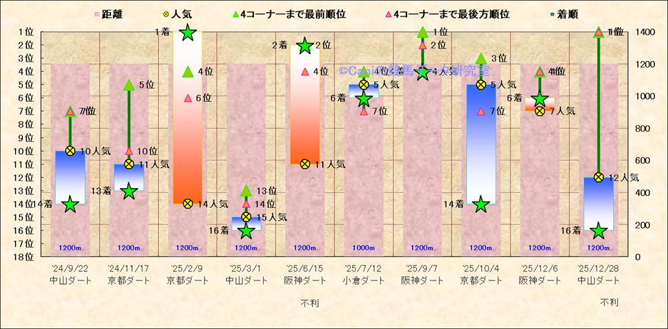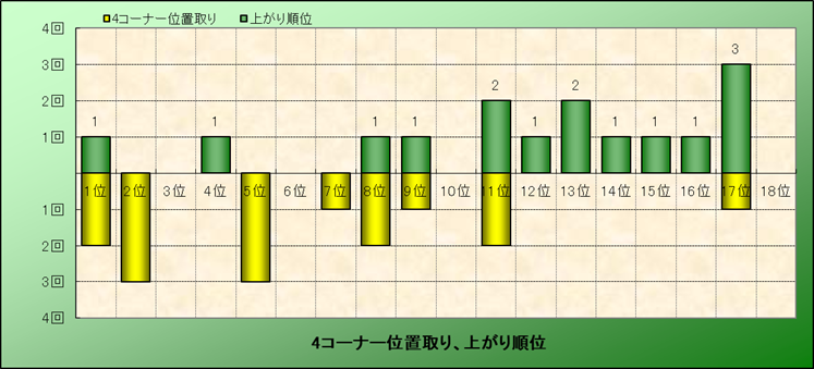 脚質解析 近20レースの4コーナーでの位置取りと上がり順位(頭数補正後) |