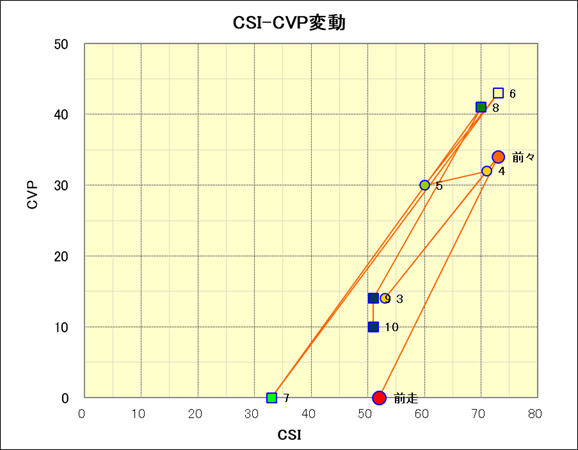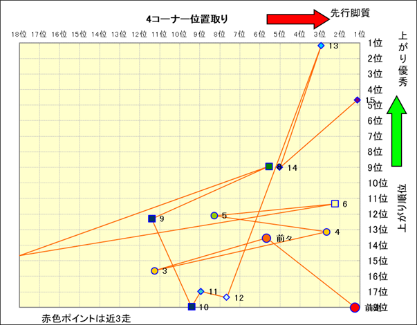 近走における4コーナーでの位置取りと上がり順位(頭数補正後) |