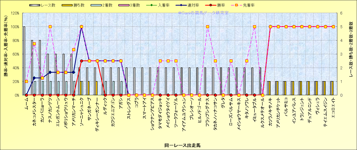 ライバル(相性)解析 同一レースに下記馬が出走した場合の成績とその馬に先着する先着率 |