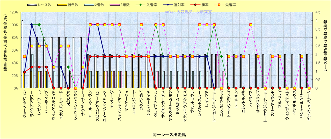 ライバル(相性)解析 同一レースに下記馬が出走した場合の成績とその馬に先着する先着率 |