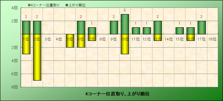 脚質解析 近20レースの4コーナーでの位置取りと上がり順位(頭数補正後) |