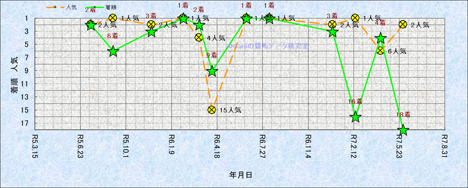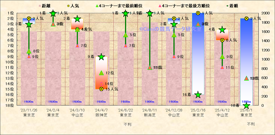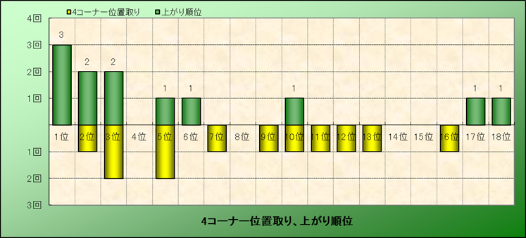 脚質解析 近20レースの4コーナーでの位置取りと上がり順位(頭数補正後) |