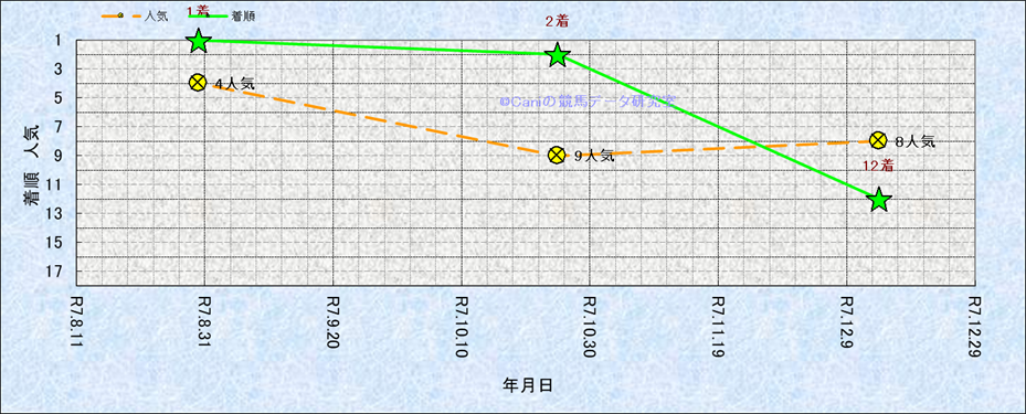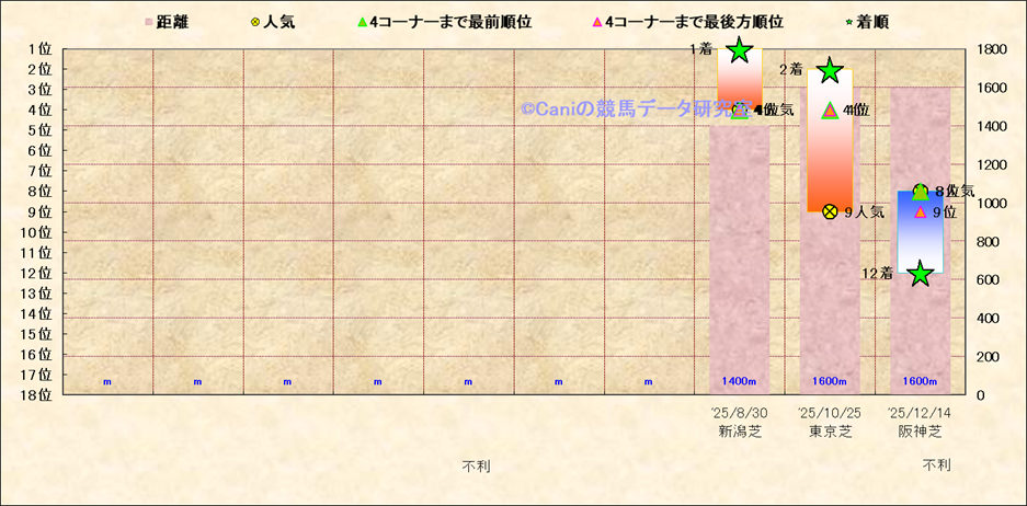 脚質解析 近20レースの4コーナーでの位置取りと上がり順位(頭数補正後) |