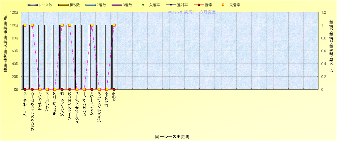 ライバル(相性)解析 同一レースに下記馬が出走した場合の成績とその馬に先着する先着率 |