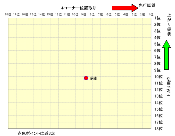 近走における4コーナーでの位置取りと上がり順位(頭数補正後) |