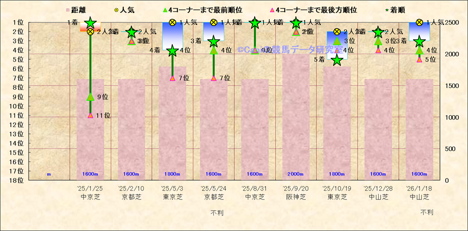 近10走 人気−着順-位置取りの推移 |