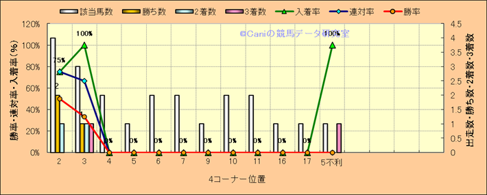 近走における4コーナーでの位置取りと上がり順位(頭数補正後) |