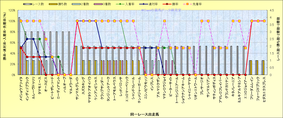 ライバル(相性)解析 同一レースに下記馬が出走した場合の成績とその馬に先着する先着率 |