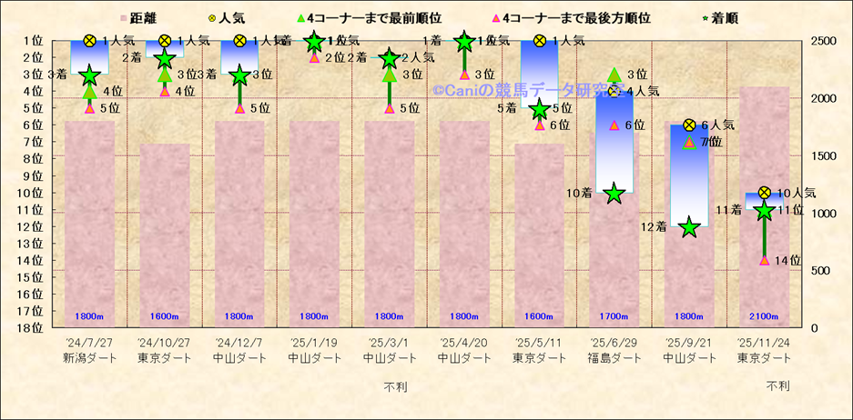 近10走 人気−着順-位置取りの推移 |