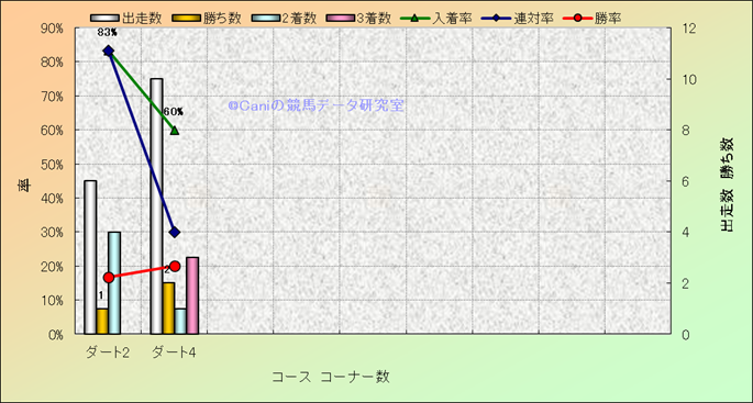 コース、コーナー数別成績(平地) |
