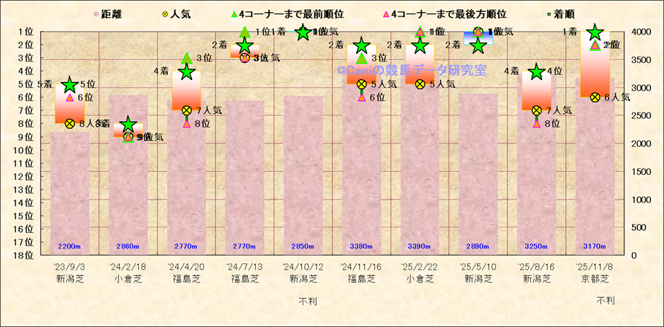 近10走 人気−着順-位置取りの推移 |