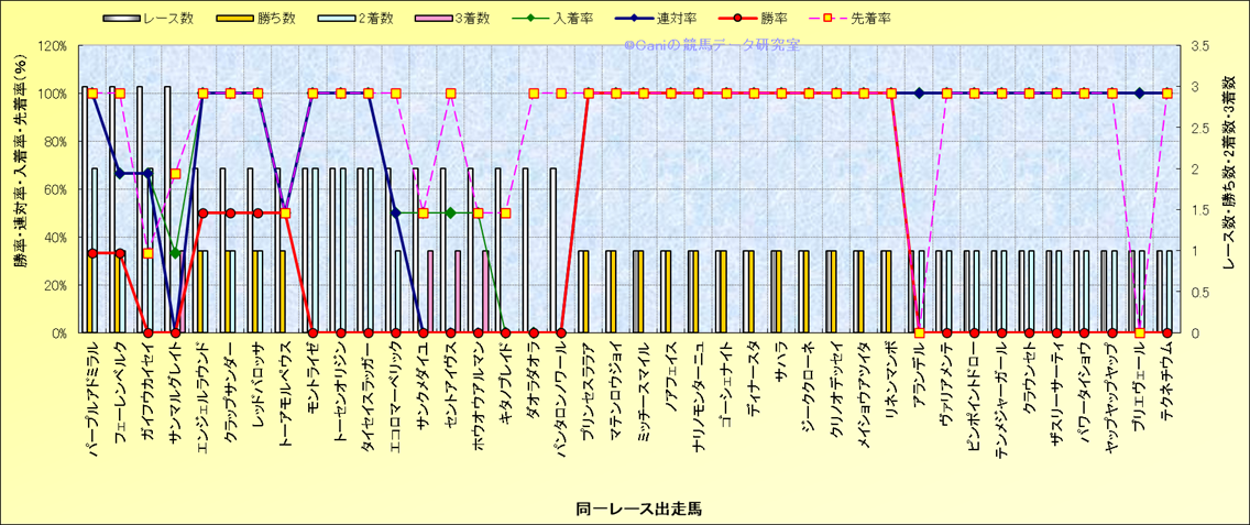 ライバル(相性)解析 同一レースに下記馬が出走した場合の成績とその馬に先着する先着率 |