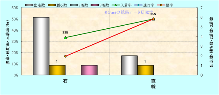 コース、最後の直線の高低差別成績(平地) |
