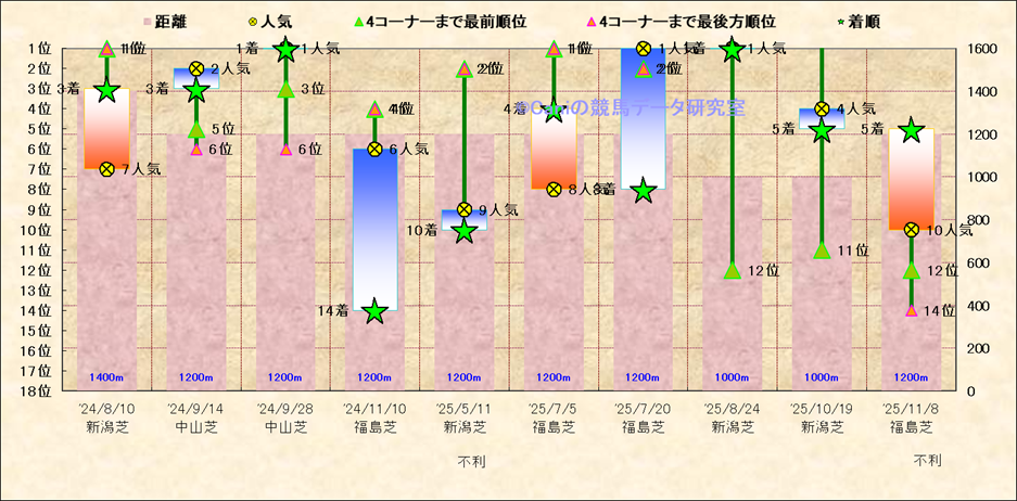近10走 人気−着順-位置取りの推移 |