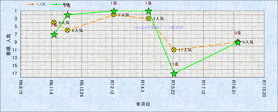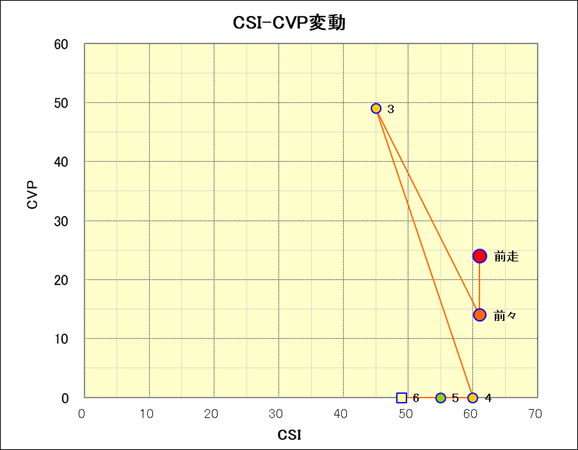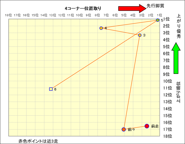 近走における4コーナーでの位置取りと上がり順位(頭数補正後) |