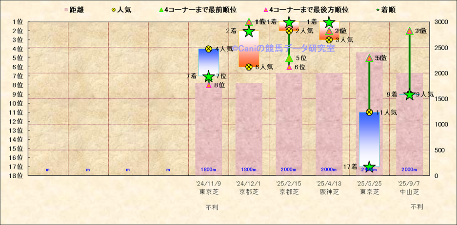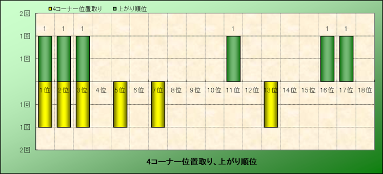 脚質解析 近20レースの4コーナーでの位置取りと上がり順位(頭数補正後) |