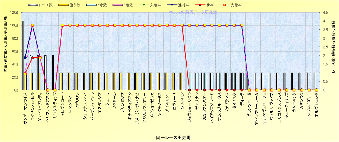 ライバル(相性)解析 同一レースに下記馬が出走した場合の成績とその馬に先着する先着率 |