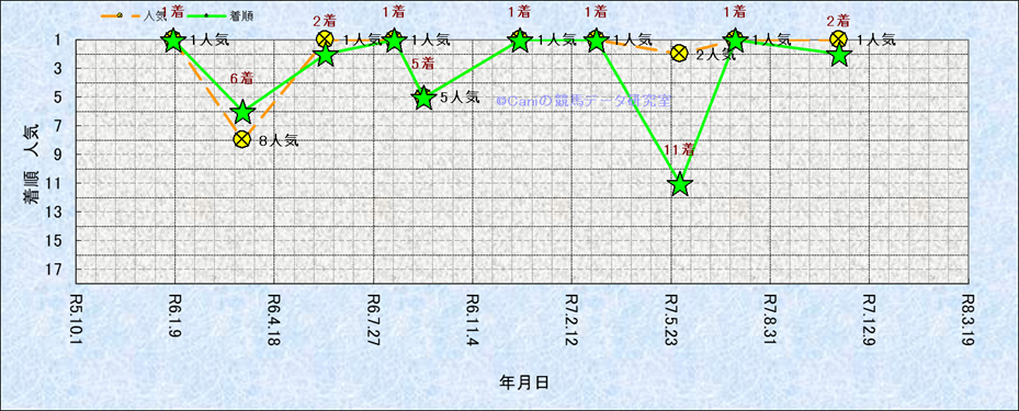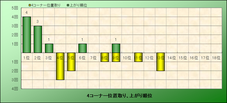 脚質解析 近20レースの4コーナーでの位置取りと上がり順位(頭数補正後) |
