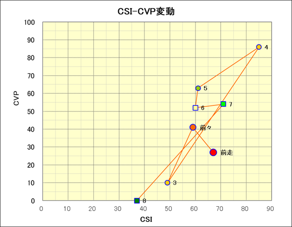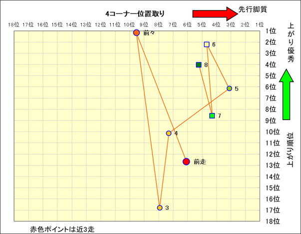 近走における4コーナーでの位置取りと上がり順位(頭数補正後) |