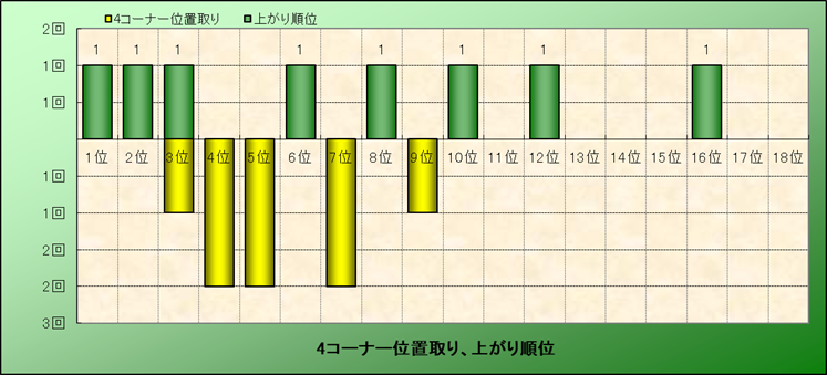 脚質解析 近20レースの4コーナーでの位置取りと上がり順位(頭数補正後) |
