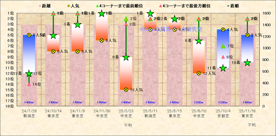 近10走 人気−着順-位置取りの推移 |