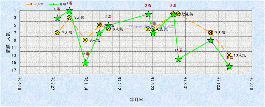 脚質解析 近20レースの4コーナーでの位置取りと上がり順位(頭数補正後) |