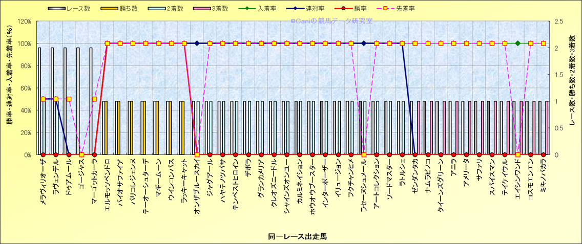 ライバル(相性)解析 同一レースに下記馬が出走した場合の成績とその馬に先着する先着率 |