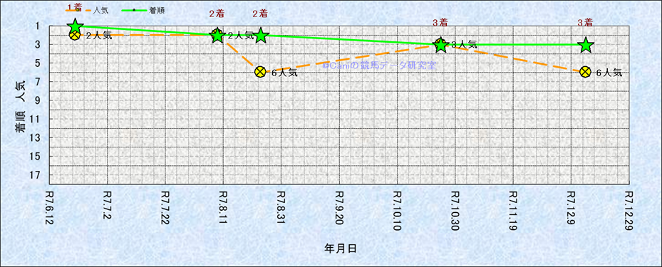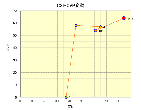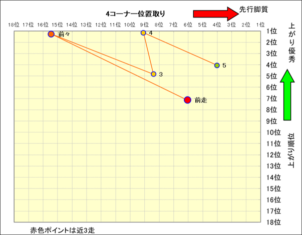 近走における4コーナーでの位置取りと上がり順位(頭数補正後) |
