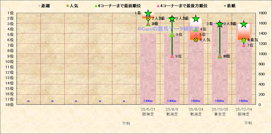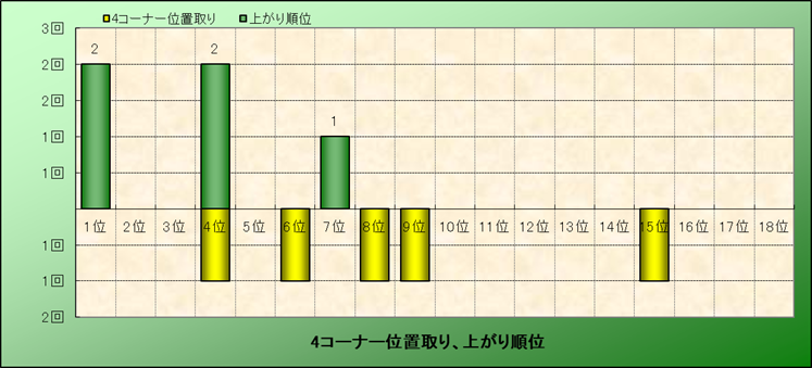 脚質解析 近20レースの4コーナーでの位置取りと上がり順位(頭数補正後) |