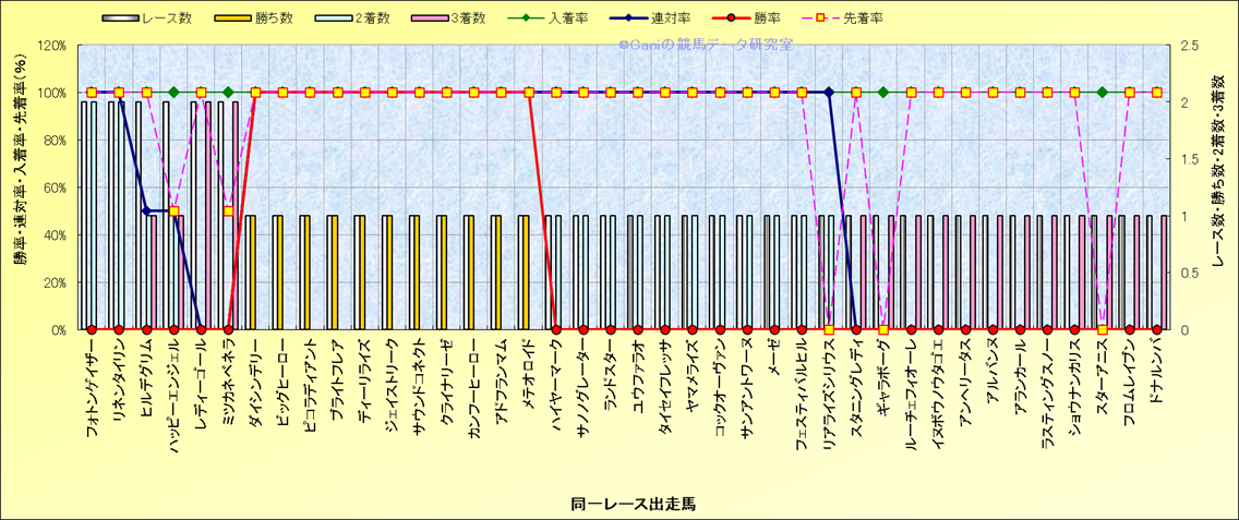 ライバル(相性)解析 同一レースに下記馬が出走した場合の成績とその馬に先着する先着率 |