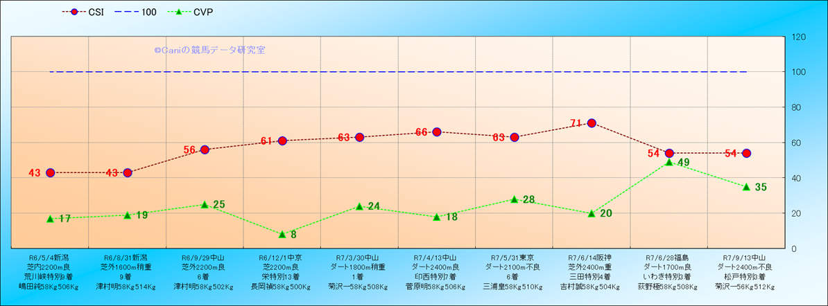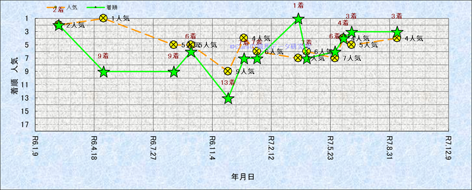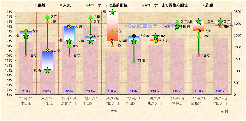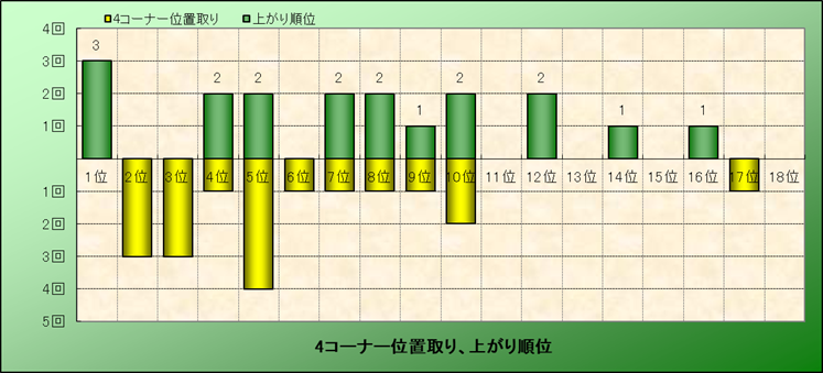脚質解析 近20レースの4コーナーでの位置取りと上がり順位(頭数補正後) |