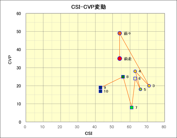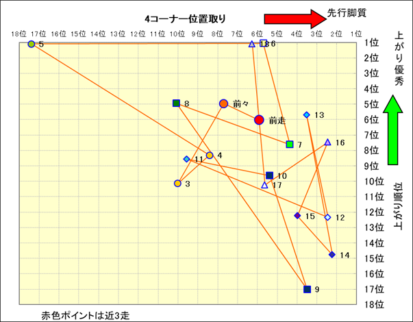 近走における4コーナーでの位置取りと上がり順位(頭数補正後) |