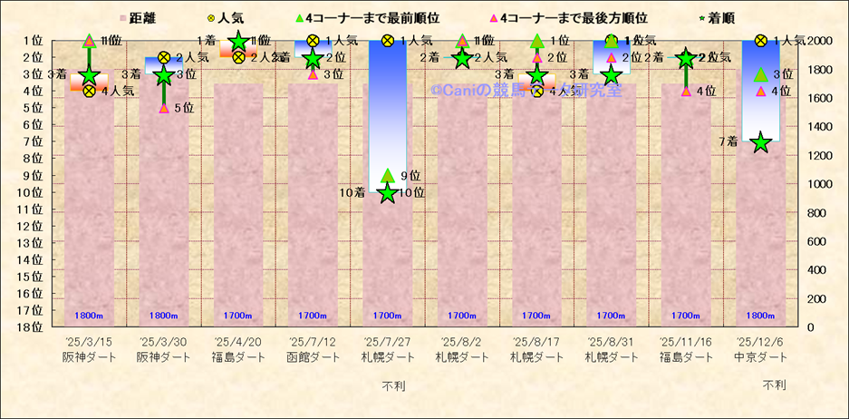 近10走 人気−着順-位置取りの推移 |