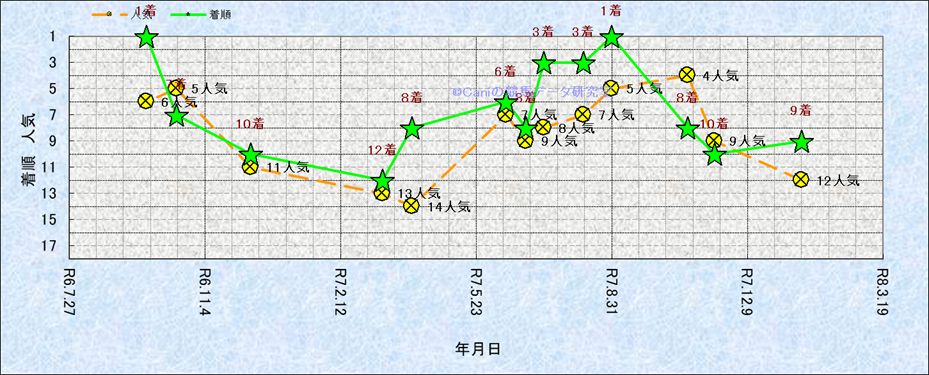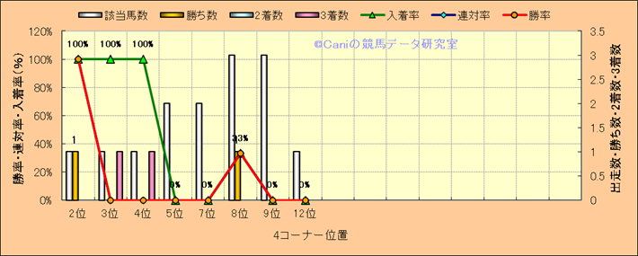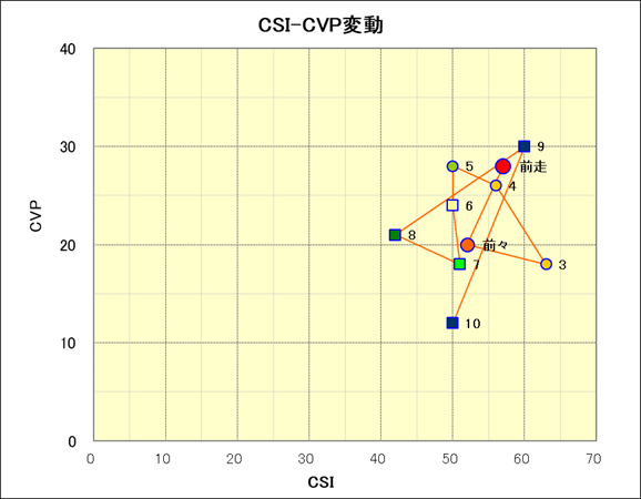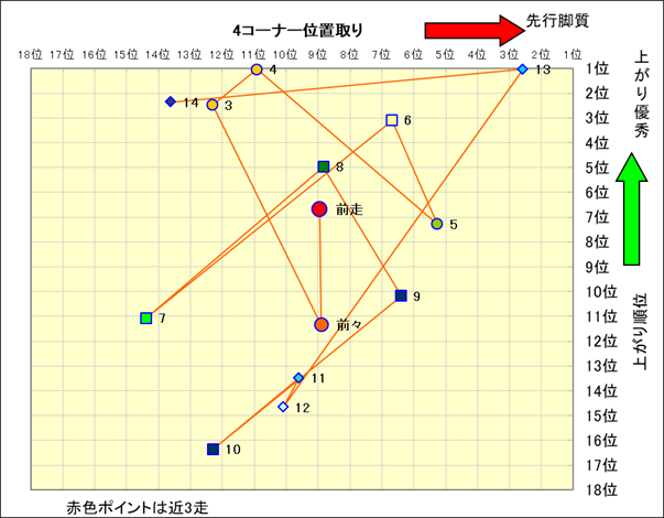 近走における4コーナーでの位置取りと上がり順位(頭数補正後) |